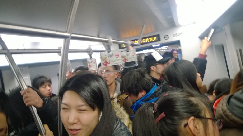 I couldn’t find room on the Line 8 train tonight to squeeze on and, believe me, I tried. So, I waited three minutes for the next one and muscled me way into a car so crowded that I didn’t need to hold on to a pole because I was wedged in nice and cozy—I could have fainted and would still be standing. My subway commute in Shanghai consists of three trains plus a healthy walk to get to/from work. While taxi’s are cheap, they are not plentiful during the peak commuting hours so I am getting used to taking the subway along with the 24+ million people who live here.