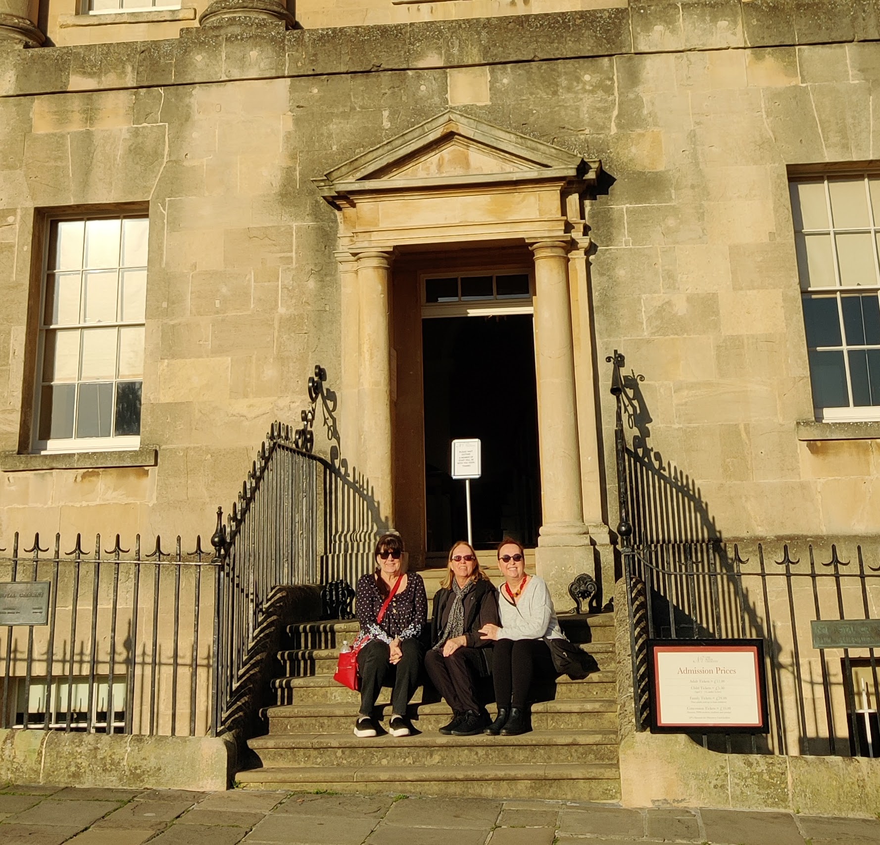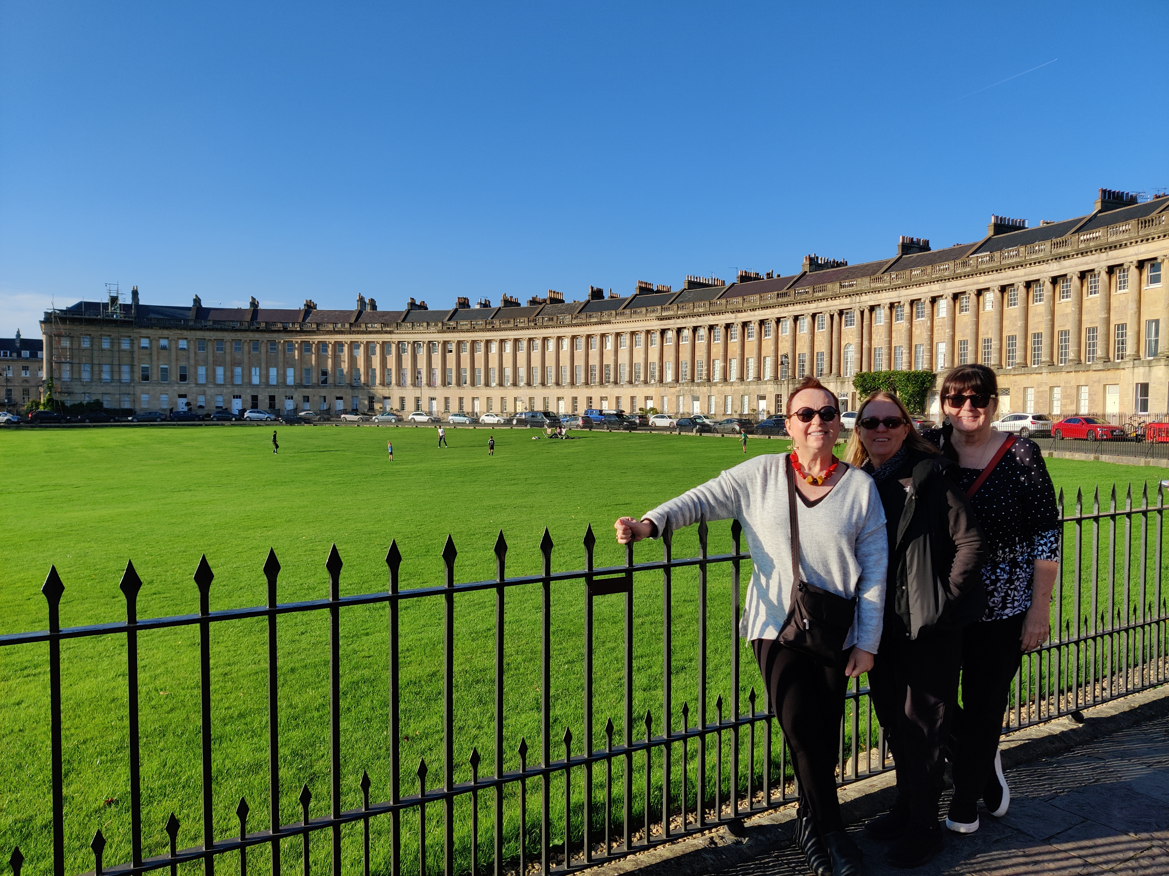 Flying into Heathrow, we had a private car service pick us up and take us straight to Bath, a two-hour (depending on motorway traffic) car ride through the countryside. Along the way we saw Windsor Castle in the distance, standing very majestic in the surrounding fields, and caught up on our journeys so far to get there. Patti and Becky flew in from Indiana, where we grew up, and I had an even longer flight from Idaho. Since the pandemic, we have made a pact to explore new places together at least once a year despite our busy schedules and some push back from our spouses. Last year we went to Florence. So fun! For our 2023 trip, we are thinking about Paris. Girls got to get out and see the world! YOLO, amirite or what?