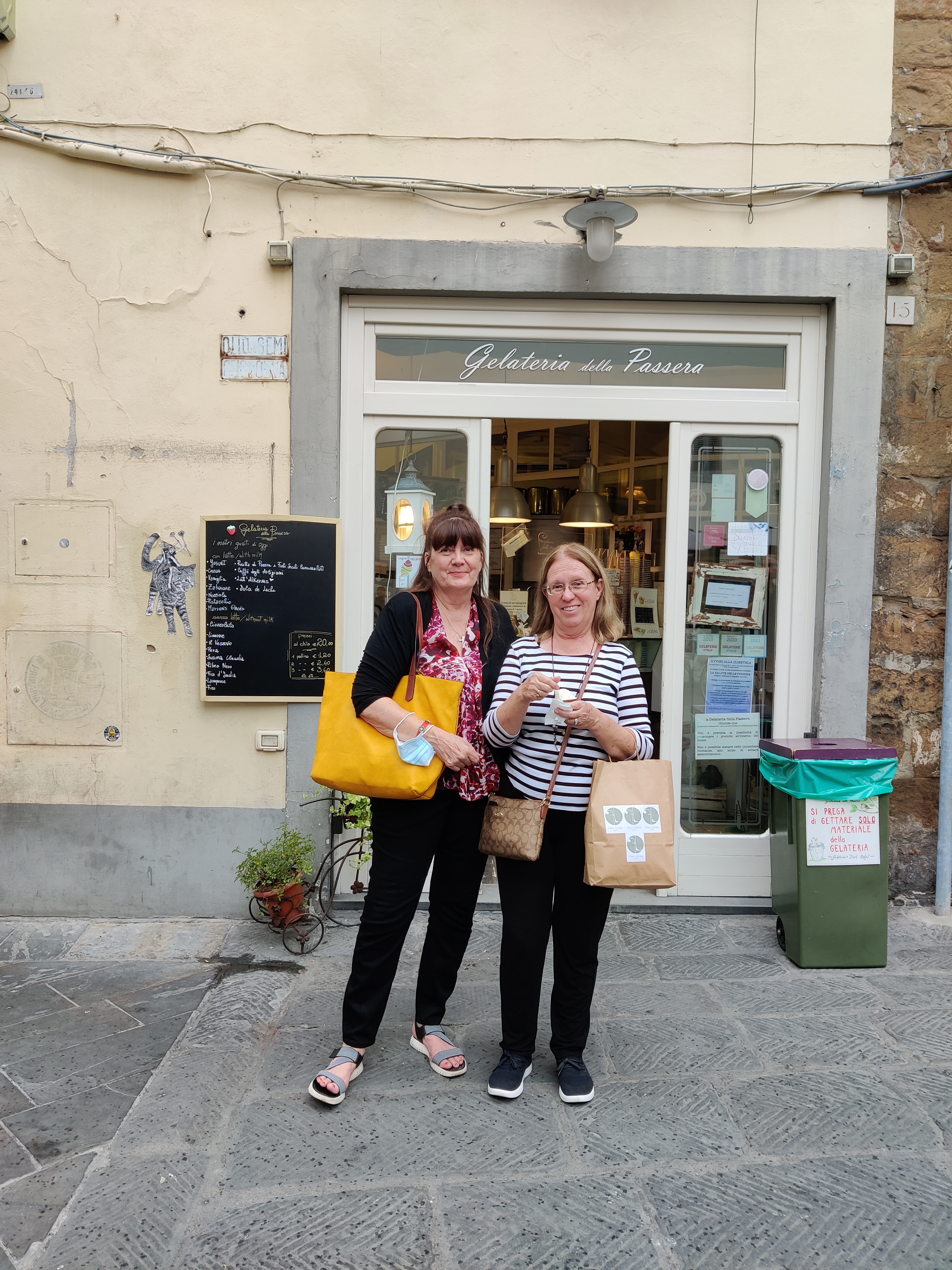 With our shins and calves aching after walking for miles, we prepared to do it again on Day 3 of our Girls Trip 2021. So much to see and do! Today’s adventure was a walking food tour booked through TripAdvisor. Our guide, Axel, met us on the steps of a church for our three-hour tour, and we were off to a caffeine stop at a lovely little café. No Starbucks here in Florence or Grande size coffees! The cafes serve espressos and tiny Americanos and cappuccinos. Most don’t have “takeaway” cups so expect to down it quickly at the café and get a quick caffeine jolt.