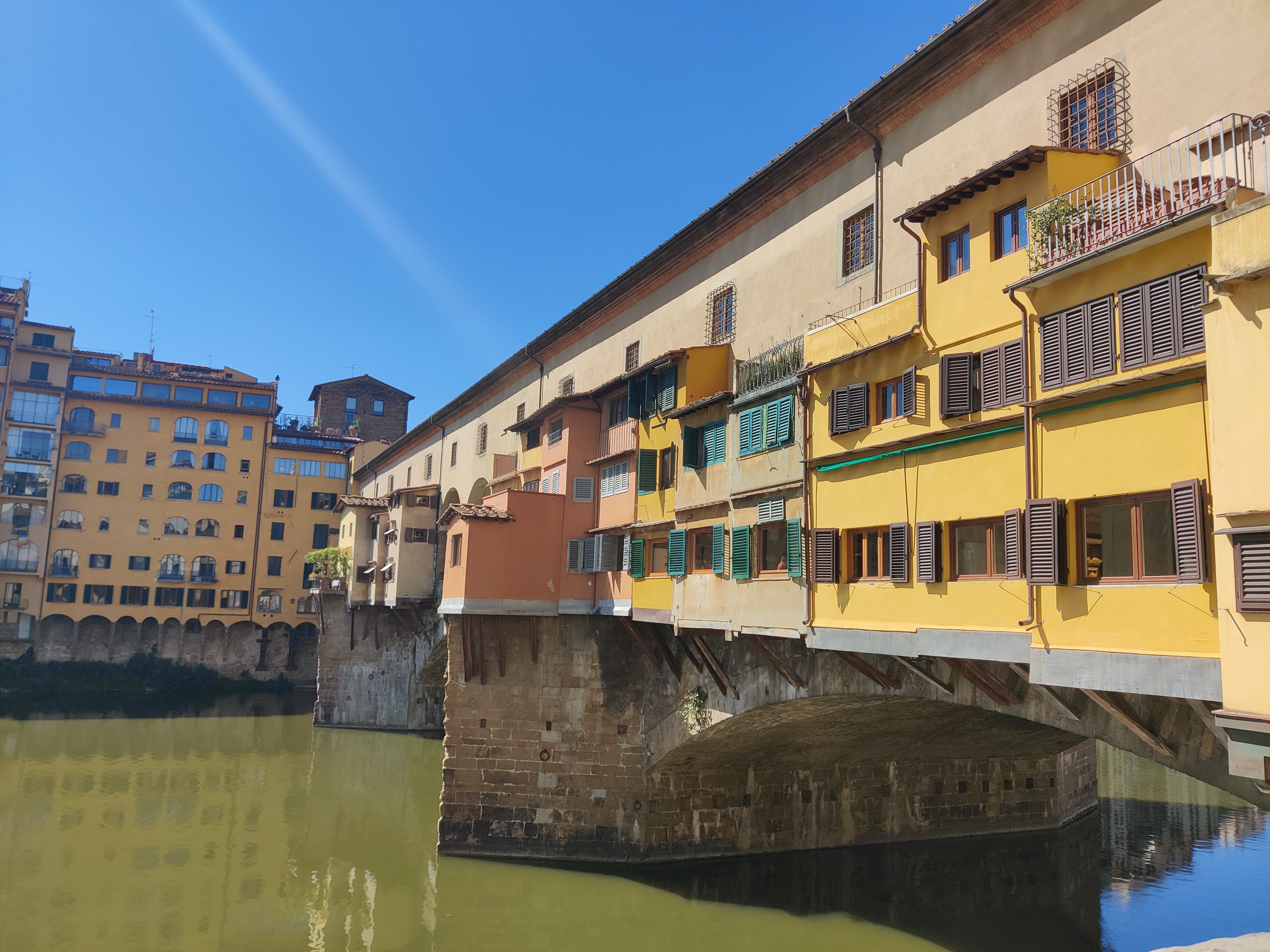 As we walked over the Ponte Vecchio bridge, we learned an interesting history lesson from our guide: When the Germans were marching up through Italy, the General was told to blow up all the bridges in Florence to slow down their pursuers. Even he couldn’t bring himself to blow up the medievial Ponte Vecchio bridge. He blew up the rest of the bridges (which were rebuilt to look the same) and saved the Ponte Vecchio from destruction. Thank goodness for it is lovely to look at. Filled with gold shops and tourists, it’s not a place I would want to hang out but to photograph it with the reflection in the Arno river is lovely. To see the rowers out on the water with it in the background is stunning and iconic to Florence.