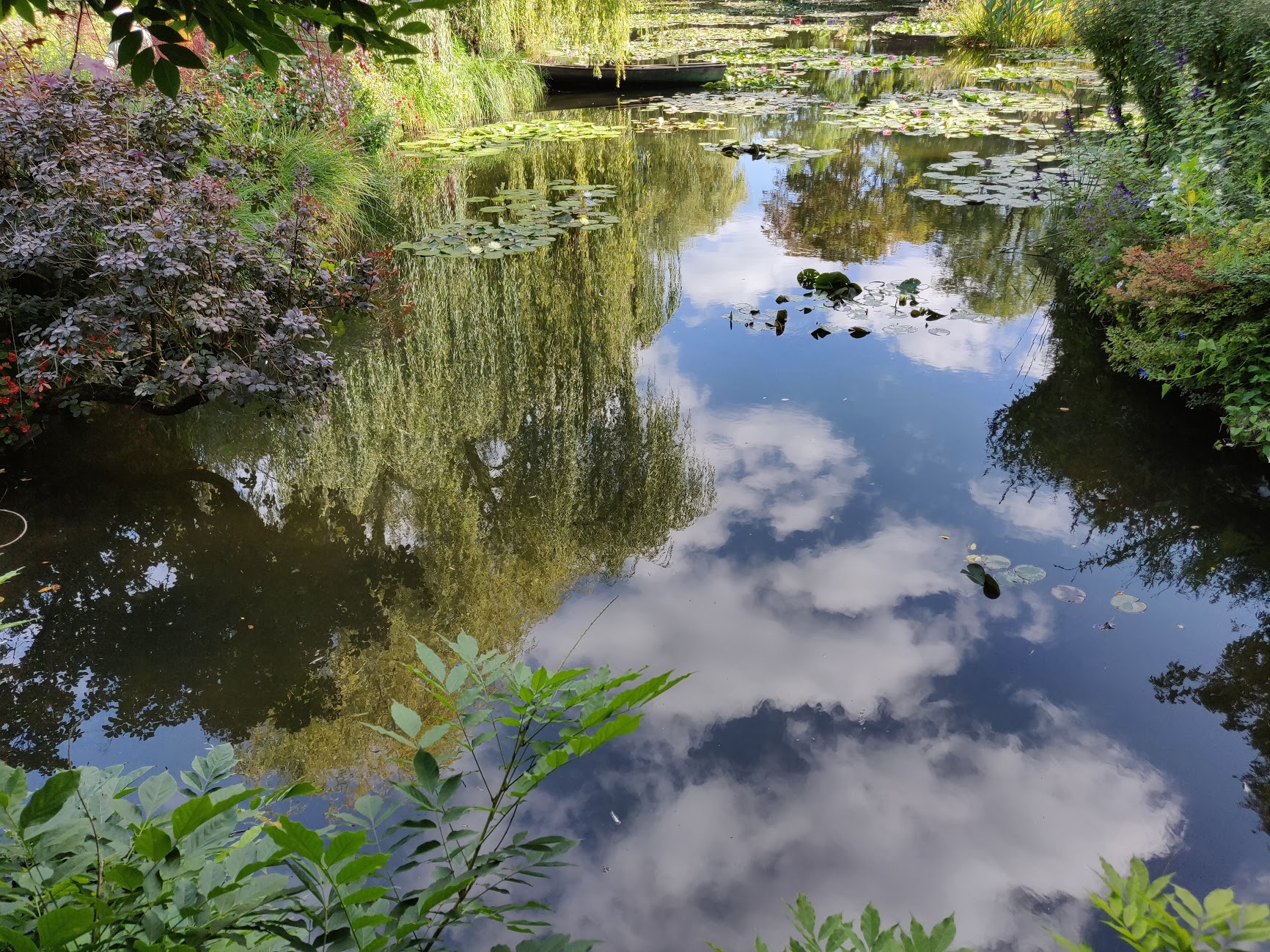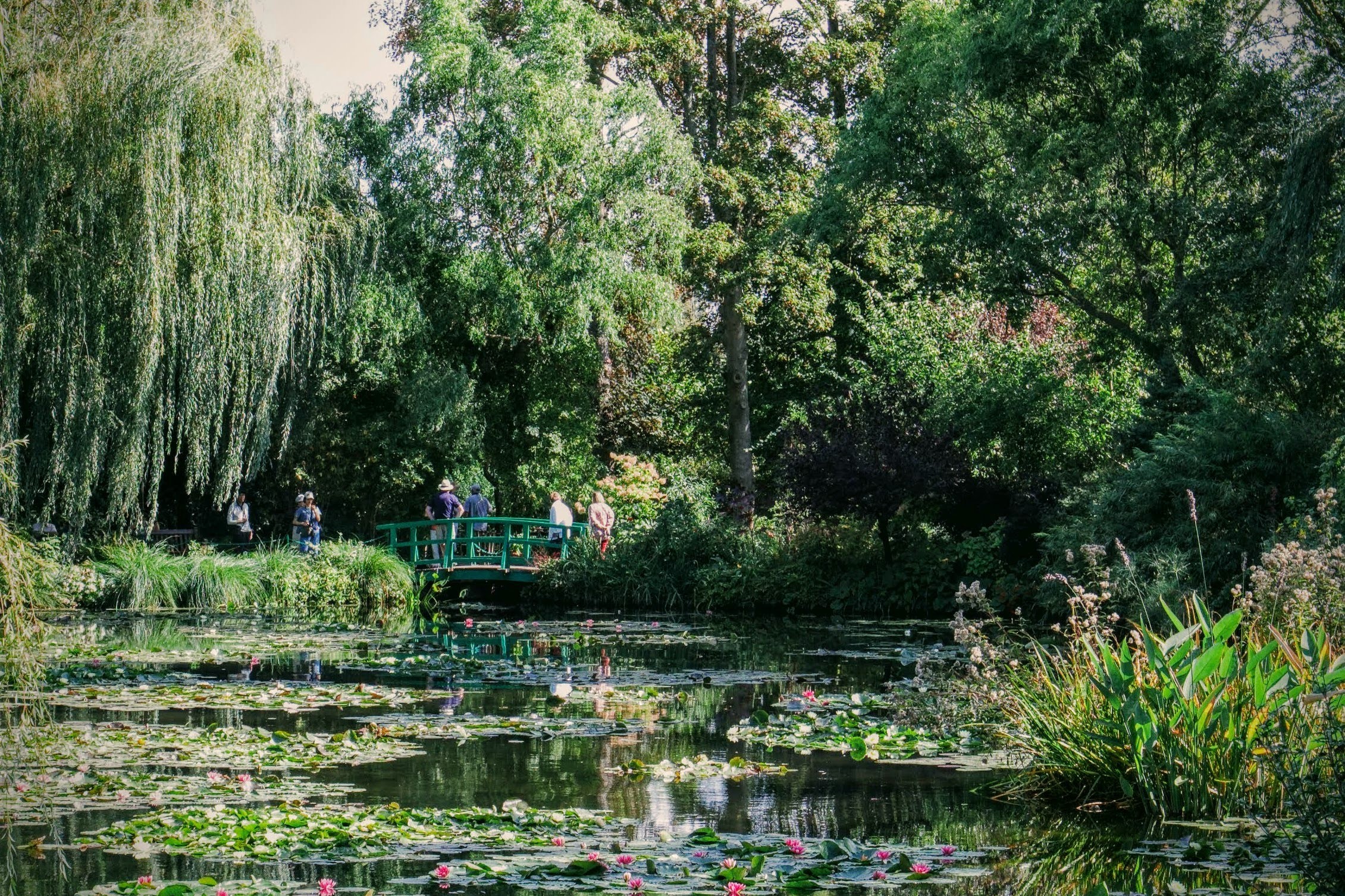 There are times to strike out on your own to explore while on vacation. There are other times when it makes sense to let someone else do the driving and handle all the details. Visiting Giverny on our Girls Trip 2023 was one of those times! After navigating our way around Paris by bus, Metro, walking, and an occasional taxi and Uber, we decided to book a guided bus tour to Giverny. In order to be efficient with our limited time in Paris, the 90-minute one-way bus ride from Paris to Giverny seemed to be better for us than a multi-hour Metro then RER train ride each way. The downfall of the tour was the early start time, which meant meeting our tour group at 8 am all the way across town, but it was all worthwhile once we gazed upon Monet’s lily ponds. Yes, it’s just that beautiful-see my photos below.