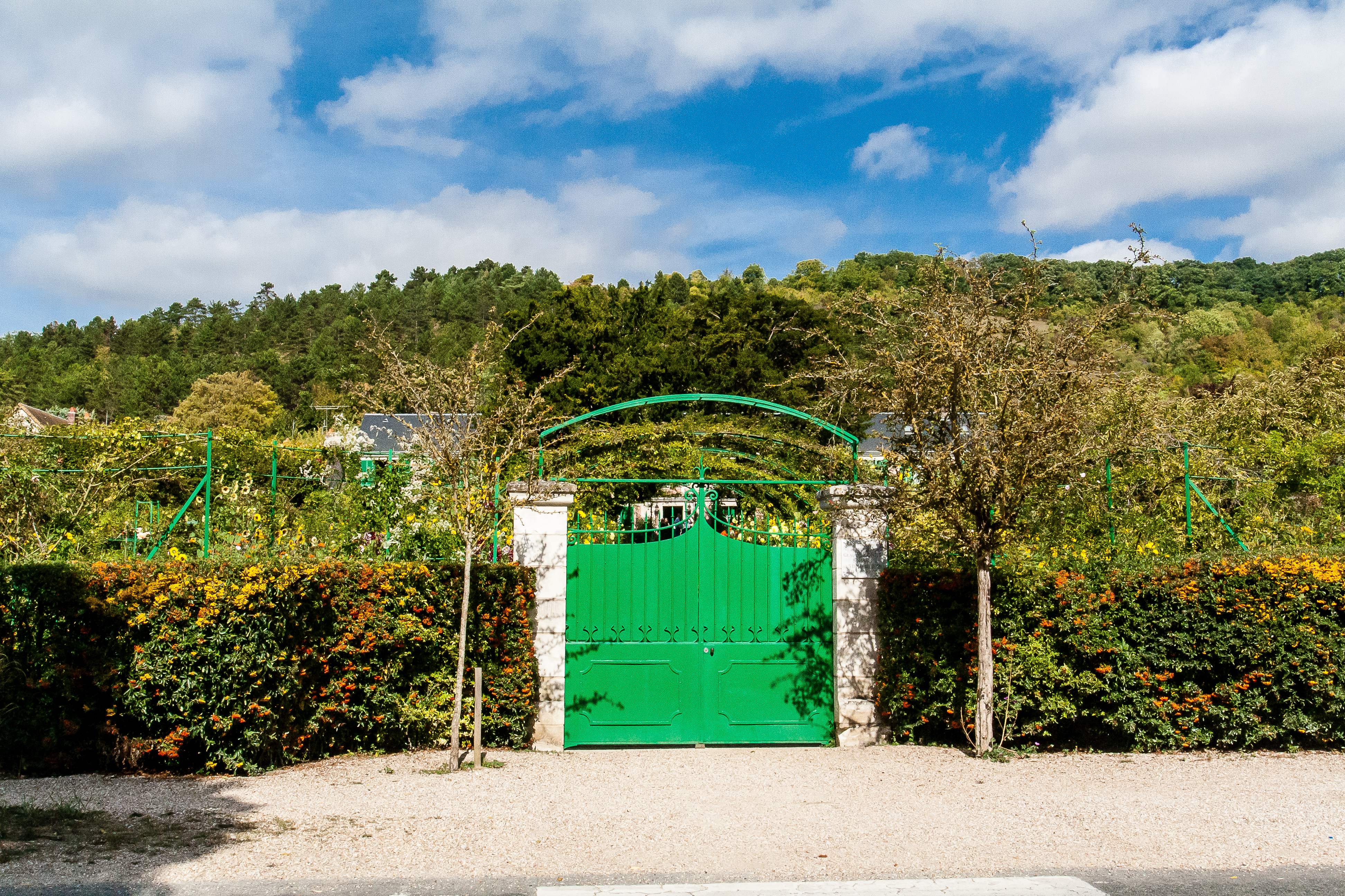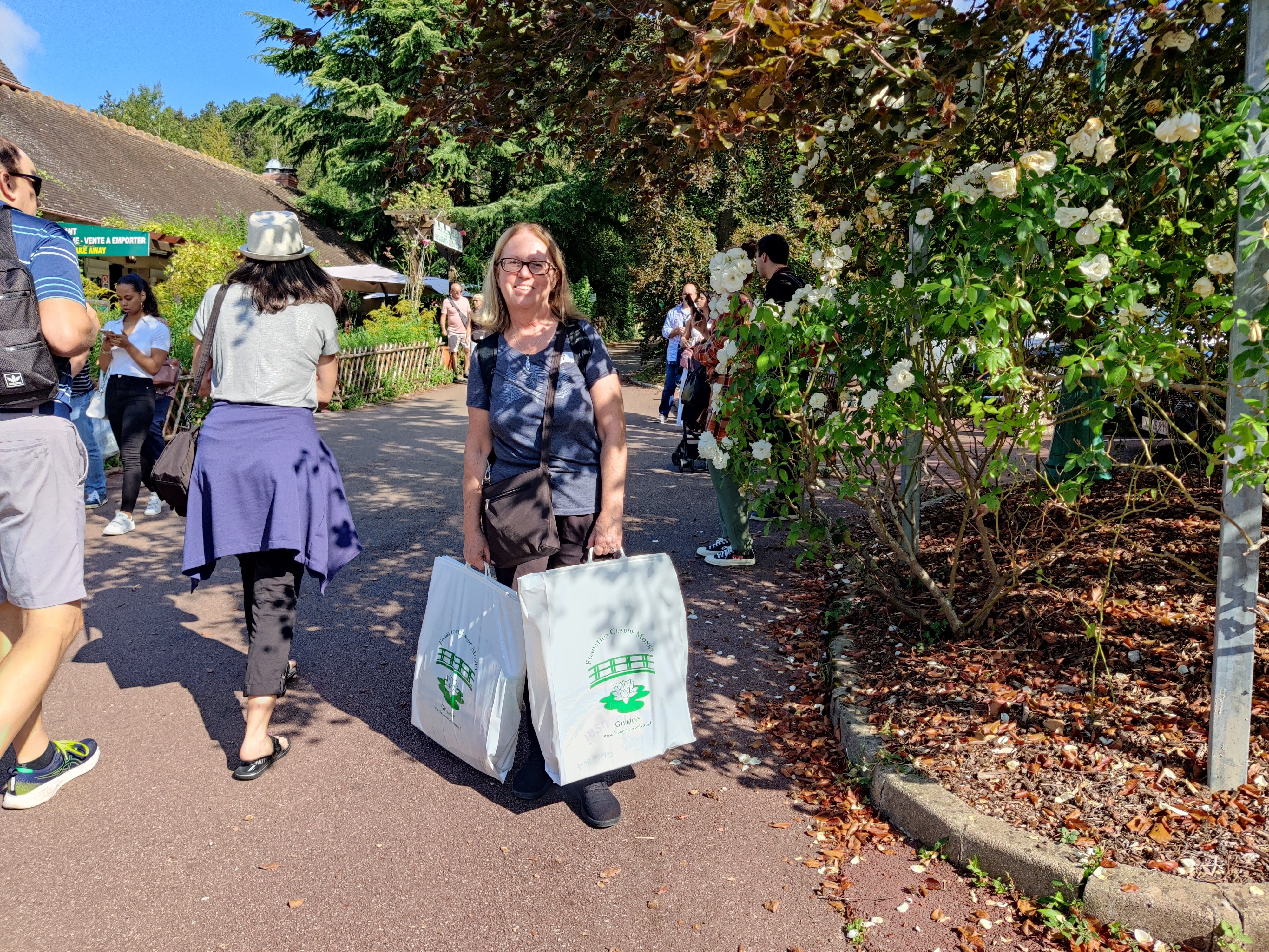 Upon arrival at Giverny, our bus parked in the lot close to the estate and off we went to immerse ourselves in all things Monet. I had been there before with Thom, so I knew what to expect and looked forward to experiencing it again. Walking around the gardens and over the bridge at the water lily ponds, you feel like you are inside a famous Monet painting. It was still crowded with tourists, but we slowly made our way around taking so many pictures because everywhere you look, it is just so beautiful. The walk around the gardens ends at Monet’s house which you can walk through or just go straight to the large gift store like Becky did to shop to your heart’s content. Their selection of Monet themed items is extensive and well-priced so be prepared to find many “must have” items. I got another pillow for my travel collection, a kitchen towel and a mousepad, all of which I see daily to remind me of this special place.