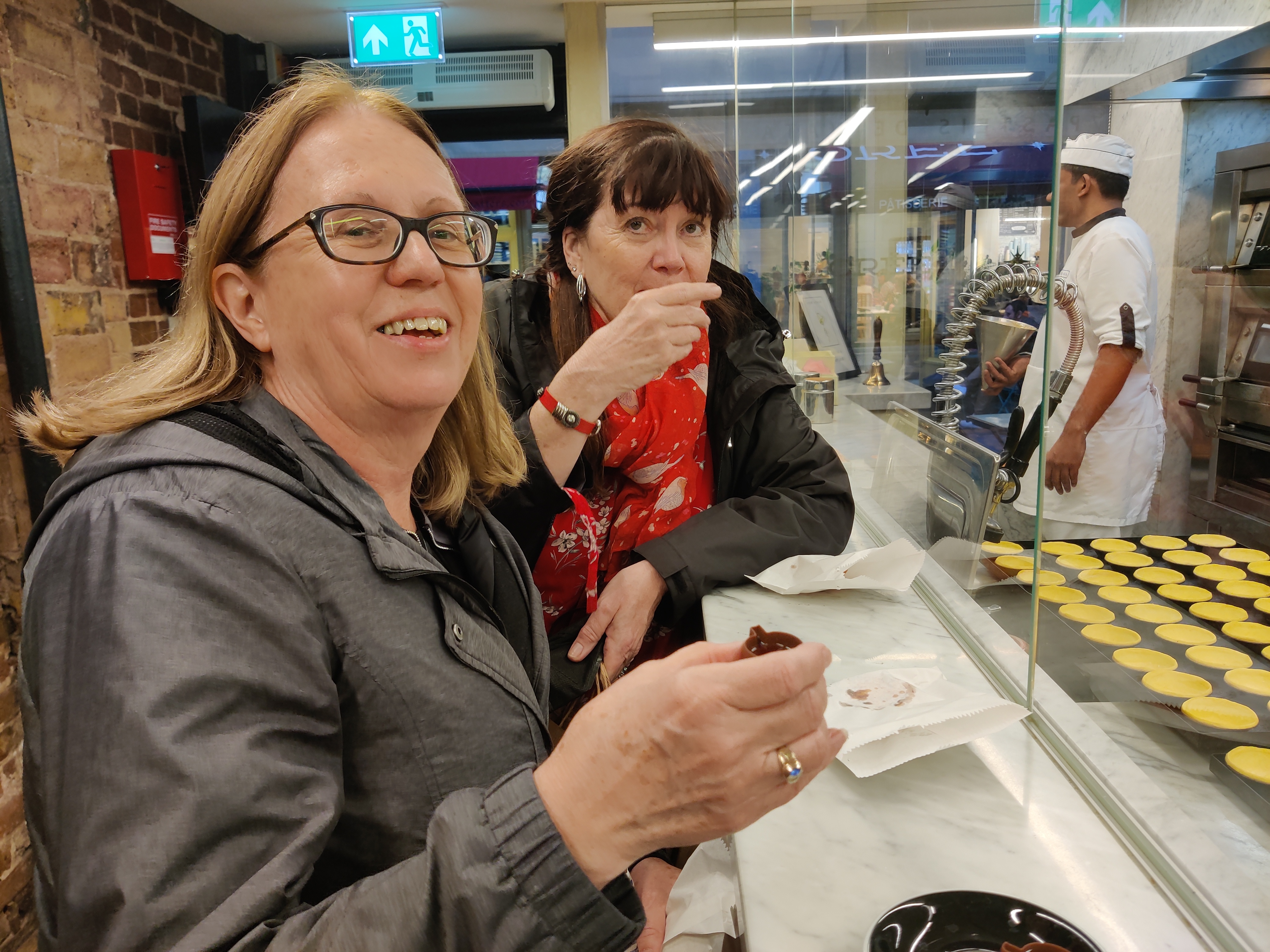 My sister is a hot chocolate connoisseur so on our Girls Trips, so we are always looking for the “best” hot chocolate. Close to Neal’s Yard, a charming colorful side street of shops and cafes, we walked by  Hotel Chocolat – Luxury Chocolates and Chocolate Gifts and gave it a try. Oh, lordy! It was liquid chocolate with whipped chocolate mousse topping. Becky was in heaven. We also picked up lots of their house made chocolates (including boozy ones) for Christmas gifts.