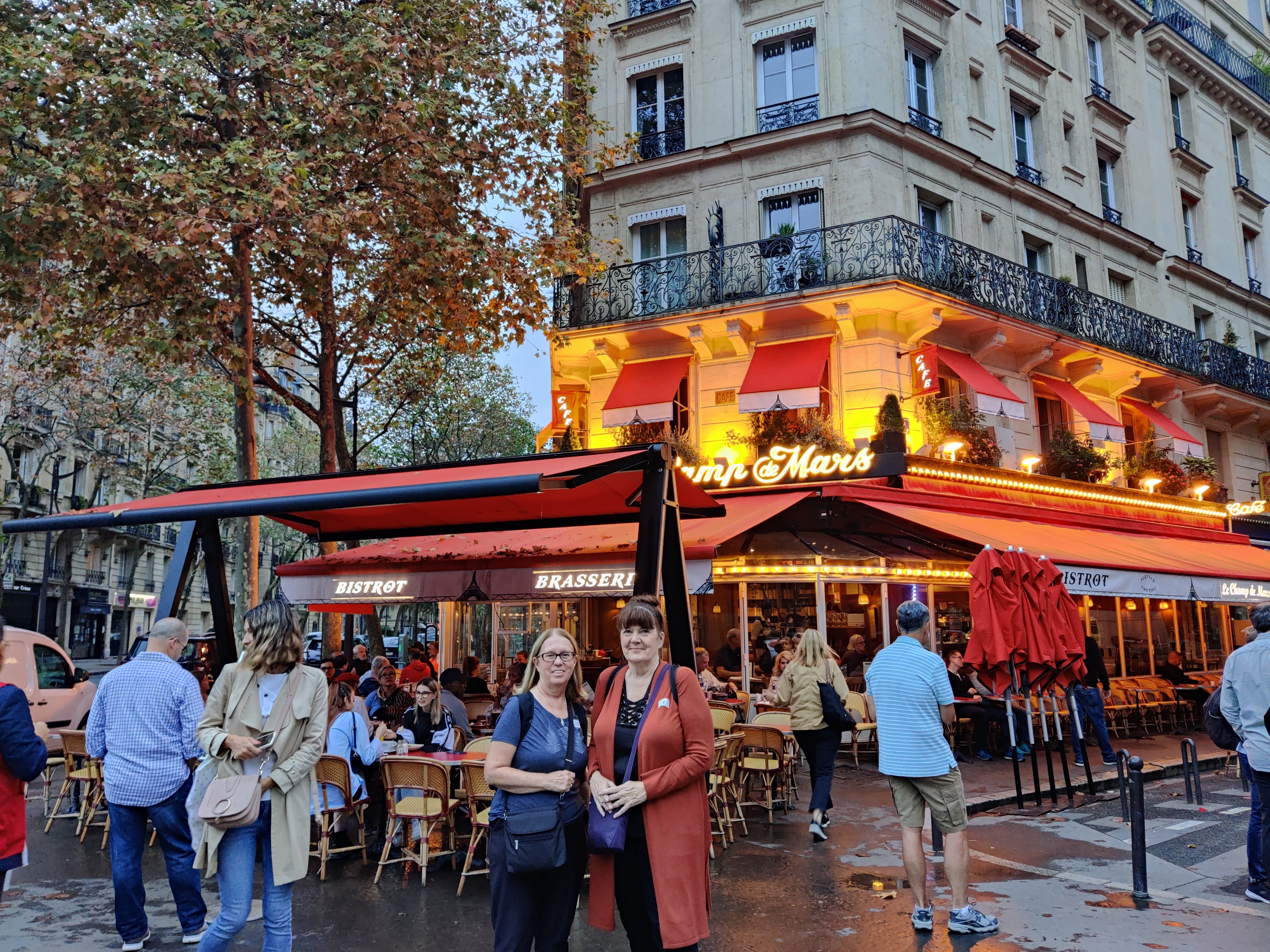 One night after a few missteps and lots of walking, we stumbled into a cafe with pizzas and when I spoke with the waiter to get a table and was told it would be a few minutes, I ordered a margherita pizza to get started baking for our very “hangry” group. He was the only waiter for the whole cafe, so the pizza came out before he took the rest of our order and before we had plates or drinks. Like hungry American animals who acted like we hadn’t eaten in days, we ripped into that pizza with our hands. Yum! Later we got our tableware and more food. This waiter was still nice to us despire our behavior, so he got a tip and a hearty Merci beaucoup!