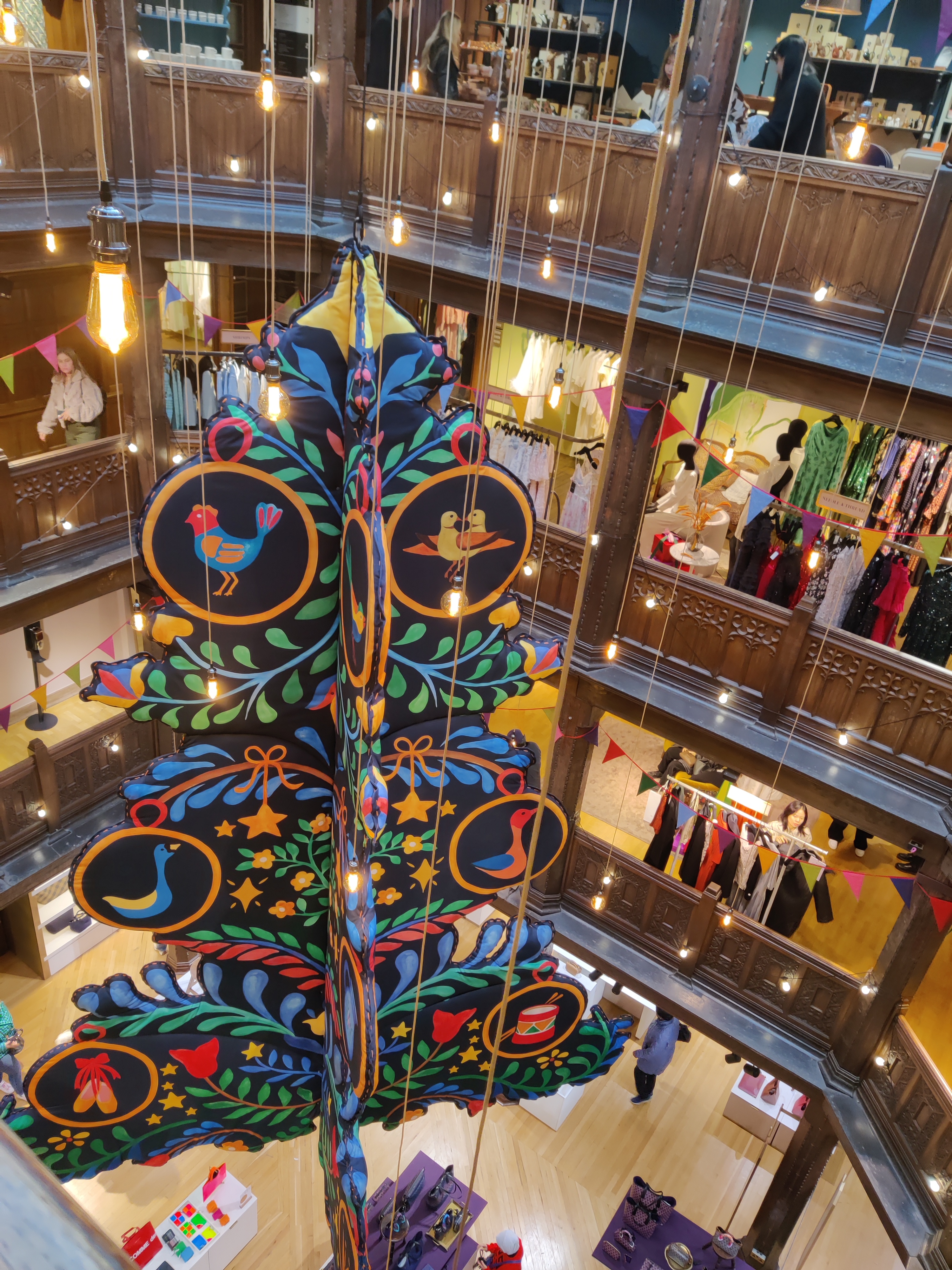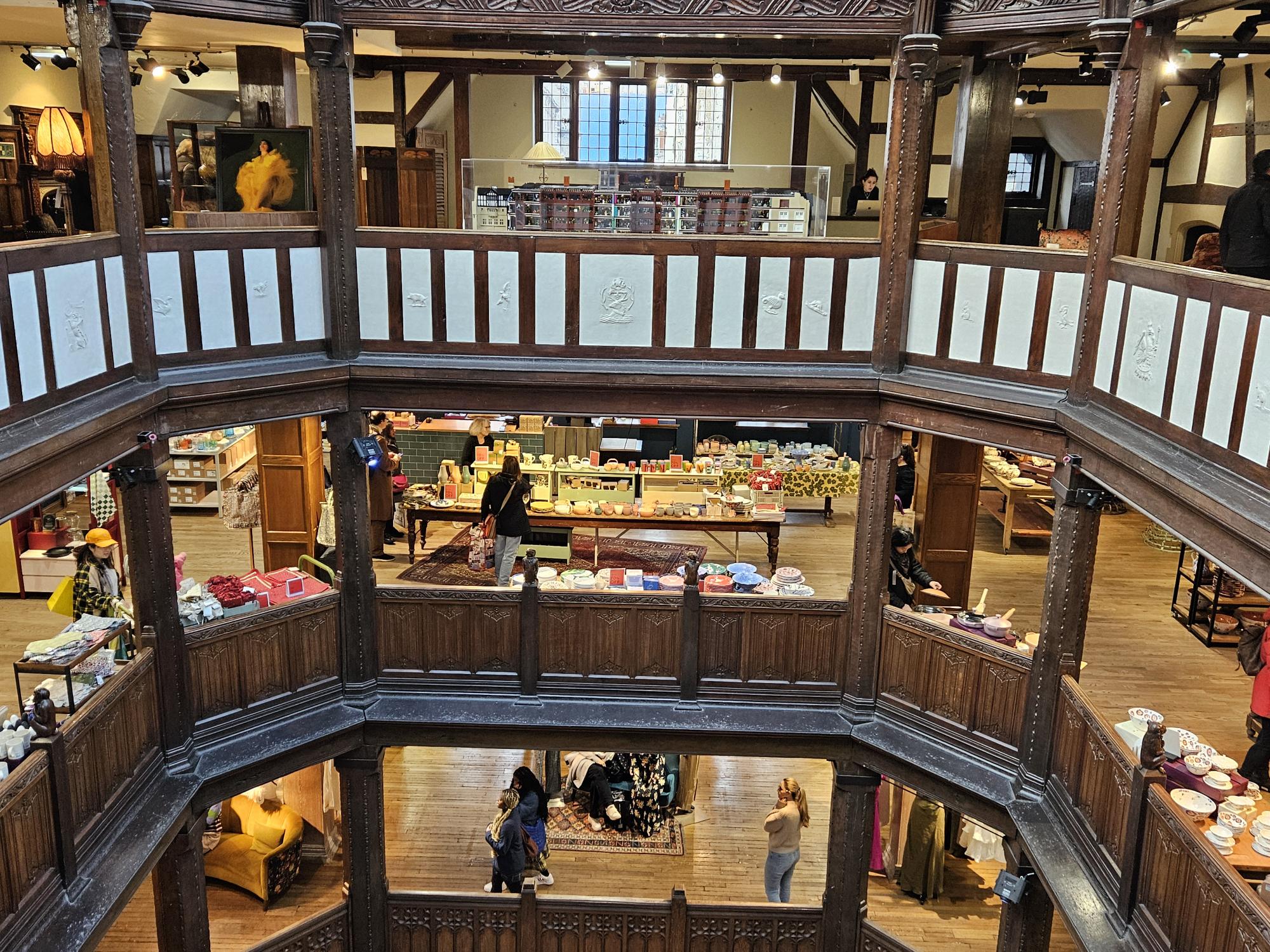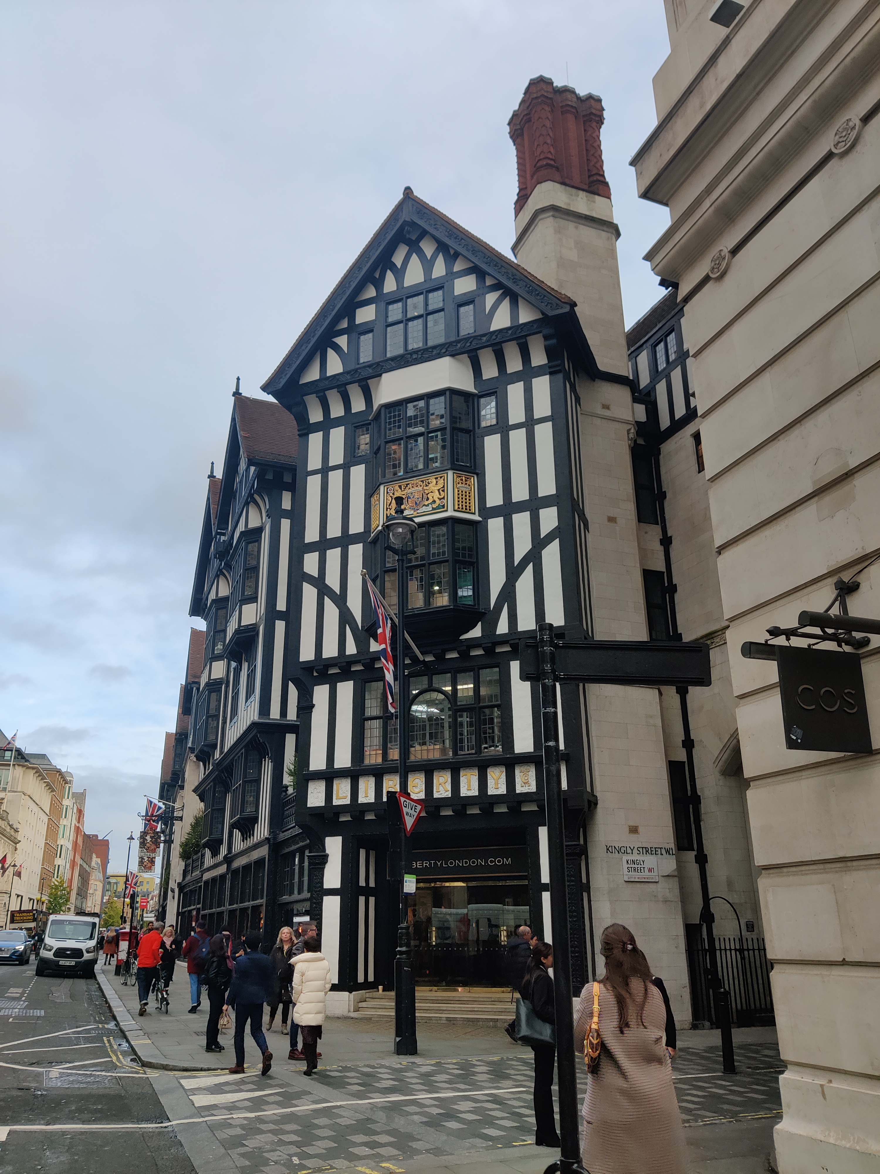 Thom had never been to Liberty, a luxury department store located in the West End near Carnaby Street, so we had to go on this trip. The façade of this mock-Tudor building with its ages old timbers is absolutely beautiful and the inside doesn’t disappoint either with wood floors and an atrium that is always spectacularly decorated for the holidays. This merchant is known for its fabrics, housewares and fashion. Founded in 1875, Liberty supports new and emerging designers within its historic walls.