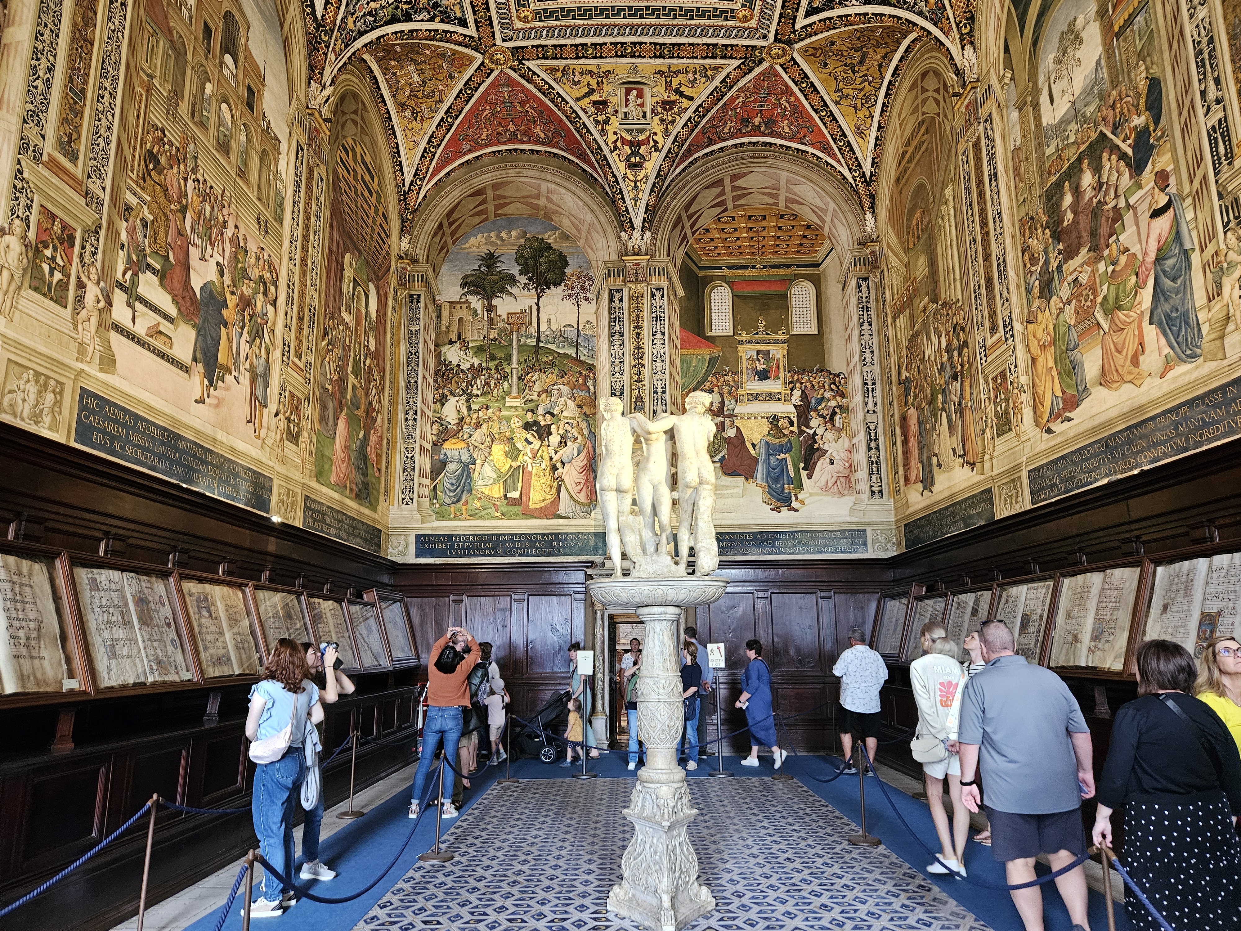 You’ll definitely want to go online in advance and buy tickets to the Duomo, so you aren’t wasting time in the ticket purchase line. Our tickets were $8 each and we purchased them through the Get Your Guide app: Siena: Siena Cathedral and Piccolomini Library Entry Ticket (getyourguide.com). I typically use Viator or Get Your Guide apps for our guided tours and experiences. They have a great cancel policy, and you don’t get charged until a few days before even if you book it months in advance. Great flexibility!