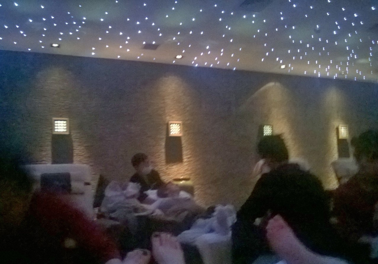 Friday night rolled around and so we set off to enjoy Happy Hour and then on to a night of Mani/Pedi’s. When Morton’s was too busy and couldn’t fit us in, we went next door to Isola and enjoyed the floor to ceiling view of the Pearl Tower and excellent service. After toasting the good life in Shanghai and quaffing down a few martini’s and pizza (just 88RMB for 2 drinks/free food–saving $$ for massages), we descended into the subterranean lower levels of the swanky IFC Mall in Pudong to Dragonfly.