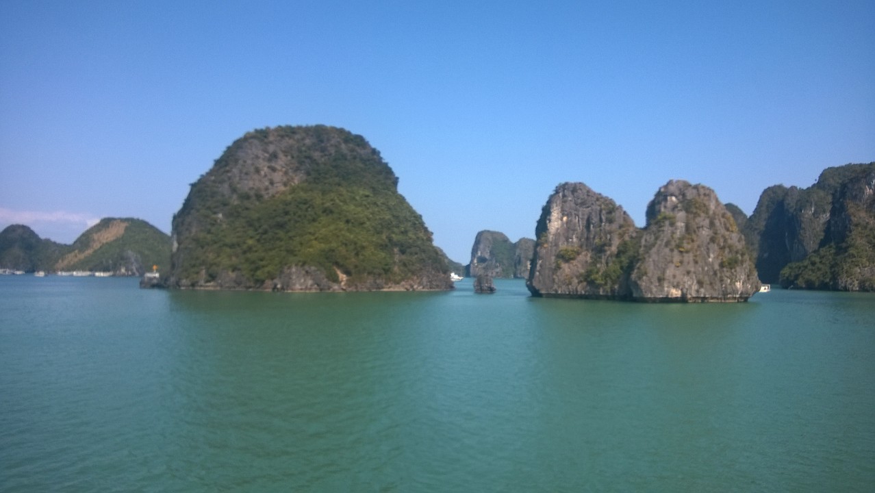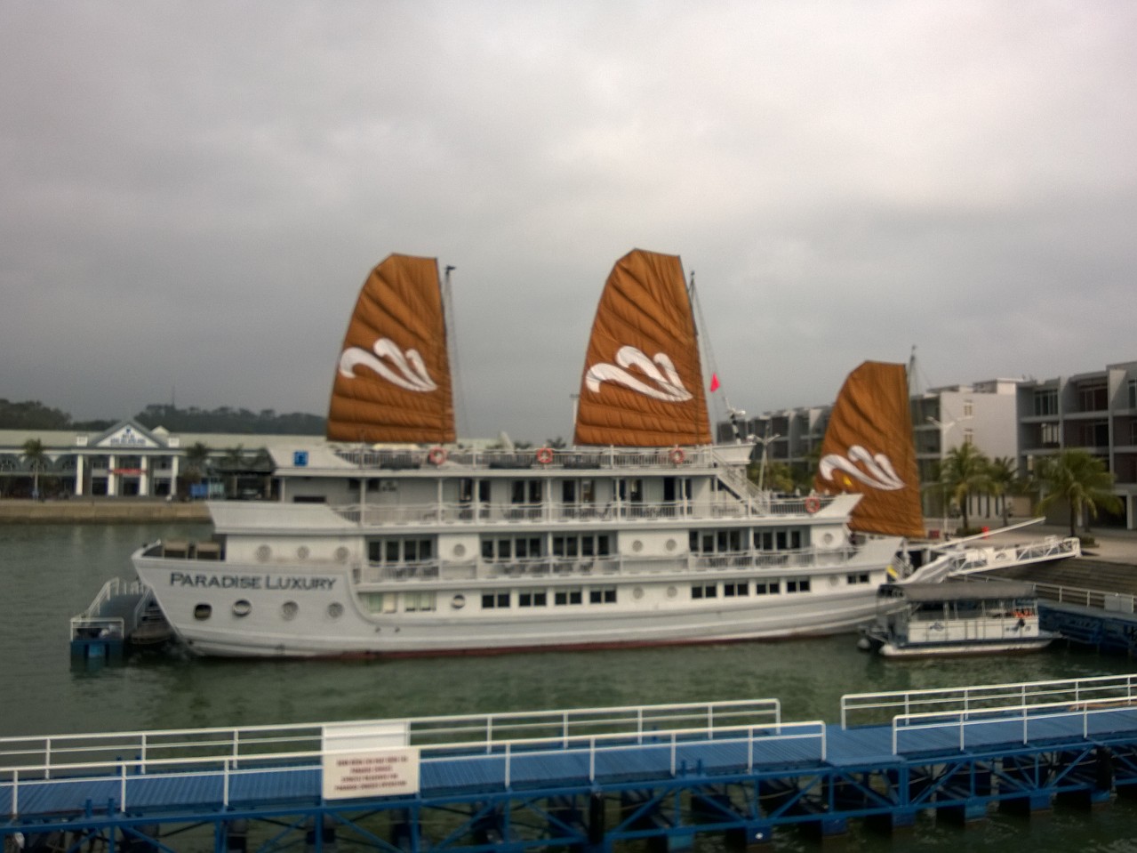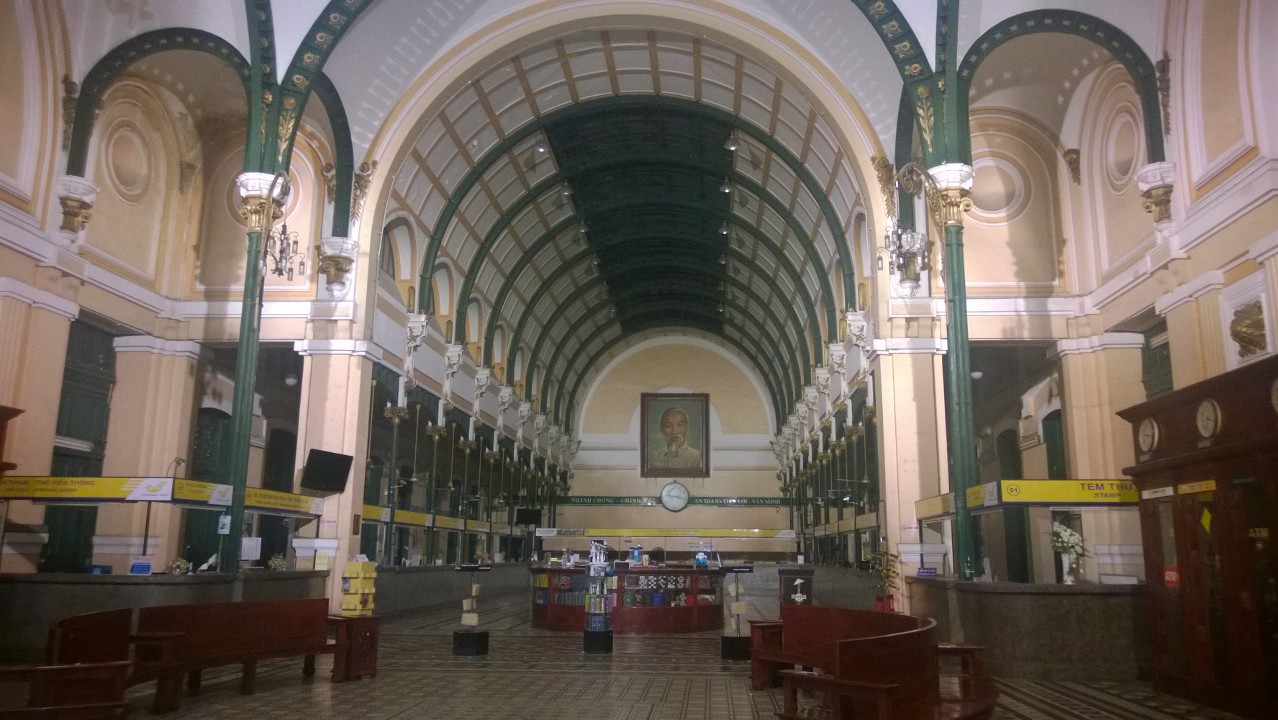The view of the street from the suite (we could now see the river) was always fascinating, though we learned to keep the windows closed because there were several birds very interested in coming in to join us in the suite. One morning we woke up to very spirited singing as the business across the street started the work day with the guys (in black pant/black tie/white shirt) and ladies in traditional green Vietnamese tunics/pants singing loudly what could have been the national song as the video playing above them on the building façade showed the Vietnam flag. They ended their chorus and filed into work at 7:30 a.m. ready to start the day fully energized. Awakened by their lovely voices, we were ready to being our day in Saigon as well!