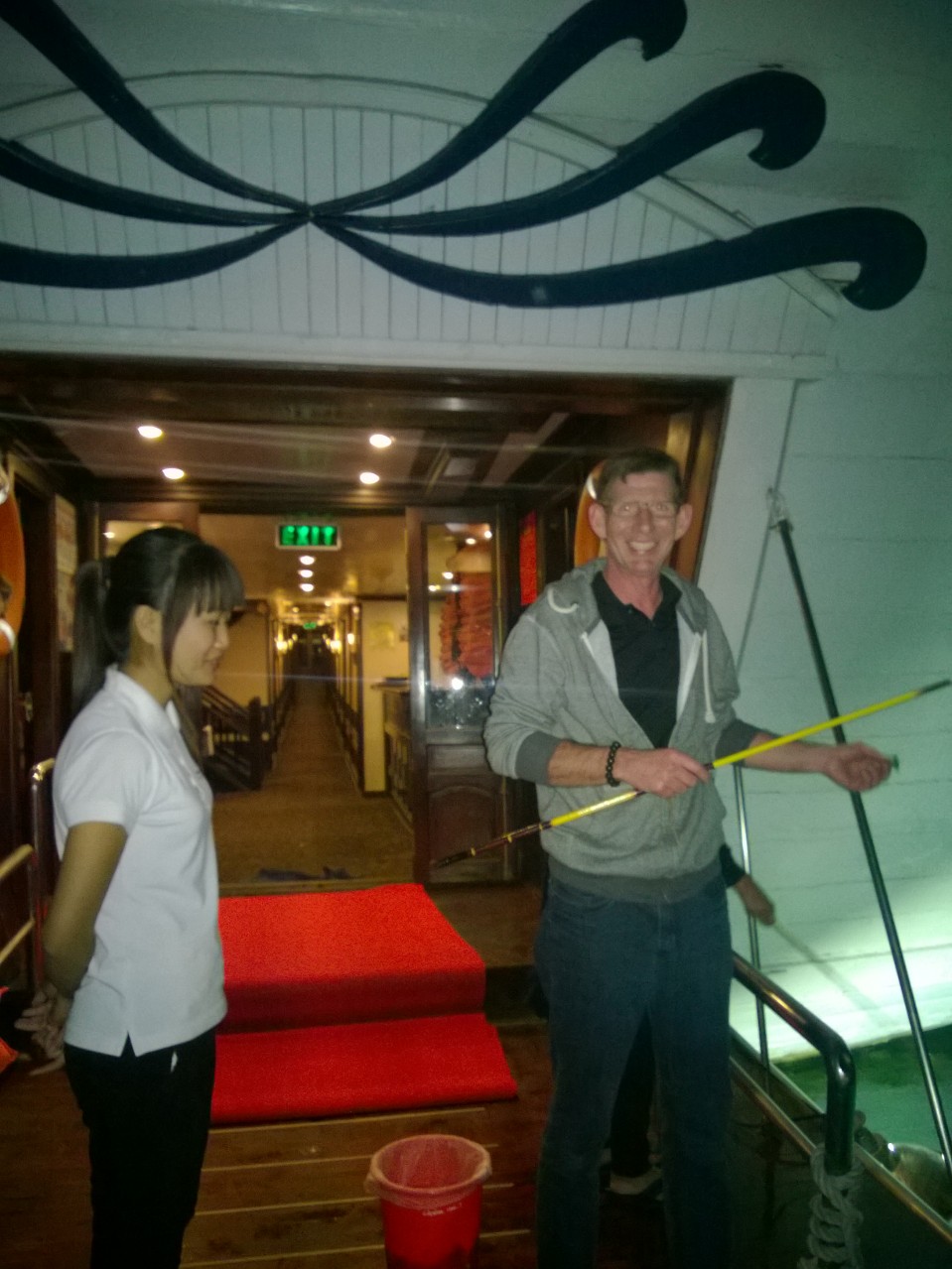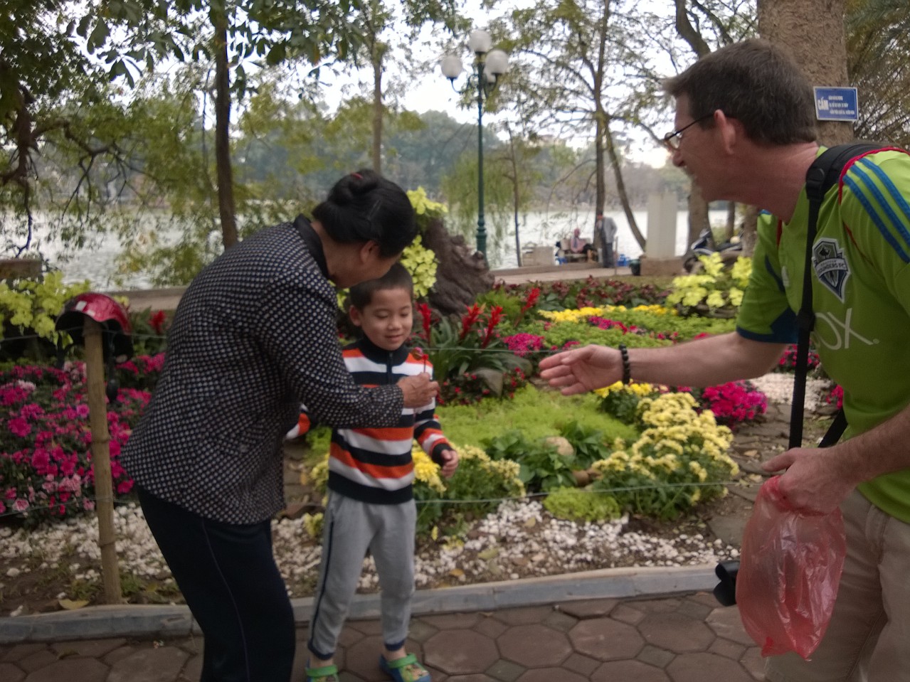 Every room in a hotel in Asia has complimentary water because you can’t (or shouldn’t unless you want to get very, very sick) drink the tap water but when we got to the suite, we discovered that the chosen few get even better bottled water when you are a suite resident. Perk! Thom was fascinated with the metal Vietnamese one cup coffee press so we ended up buying several at the airport gift shop to bring home. We love our coffee! We picked up some Vietnamese coffee too at the airport with our last Dong.